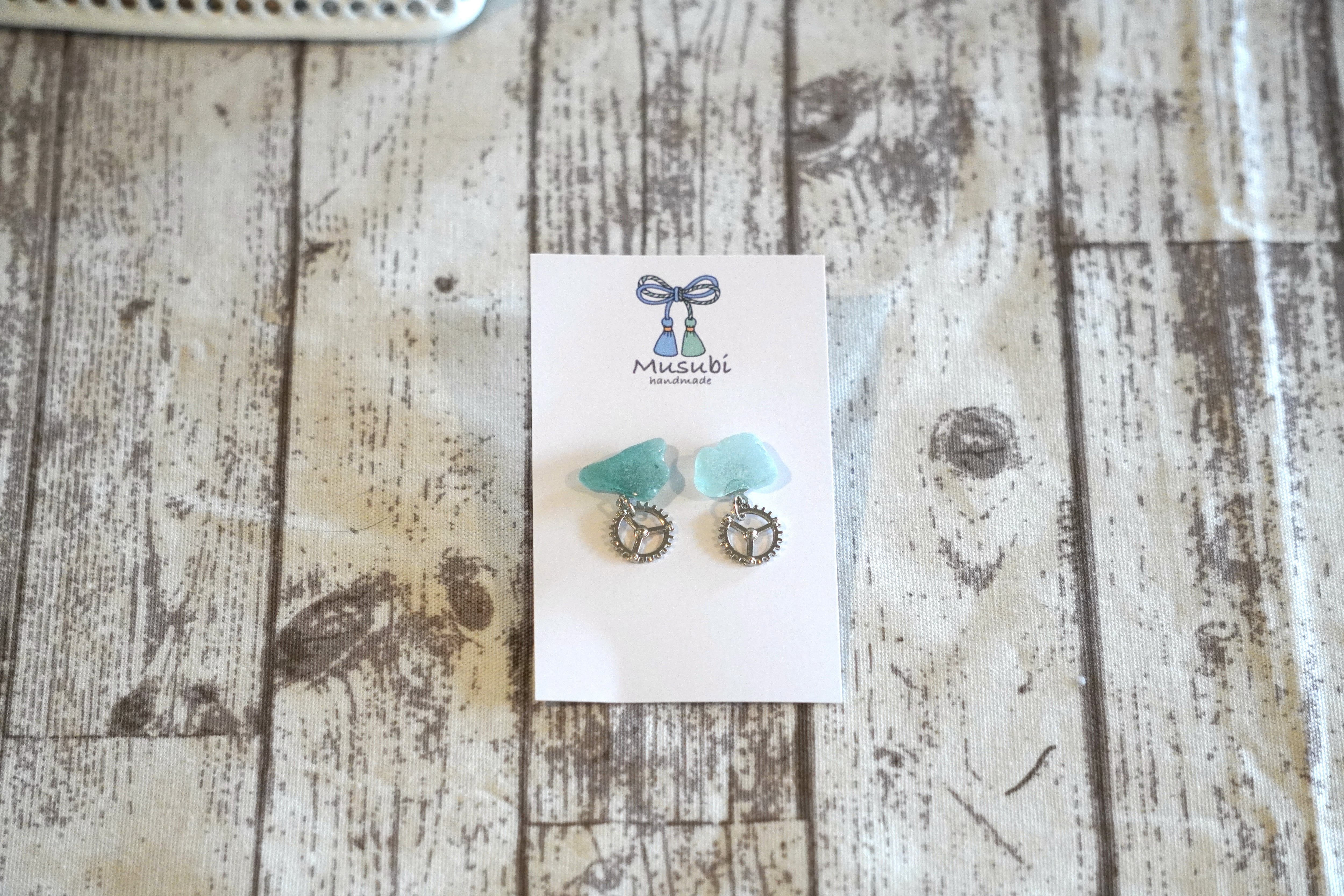 一つとして同じ形はないビーチグラスを使ったピアスです。