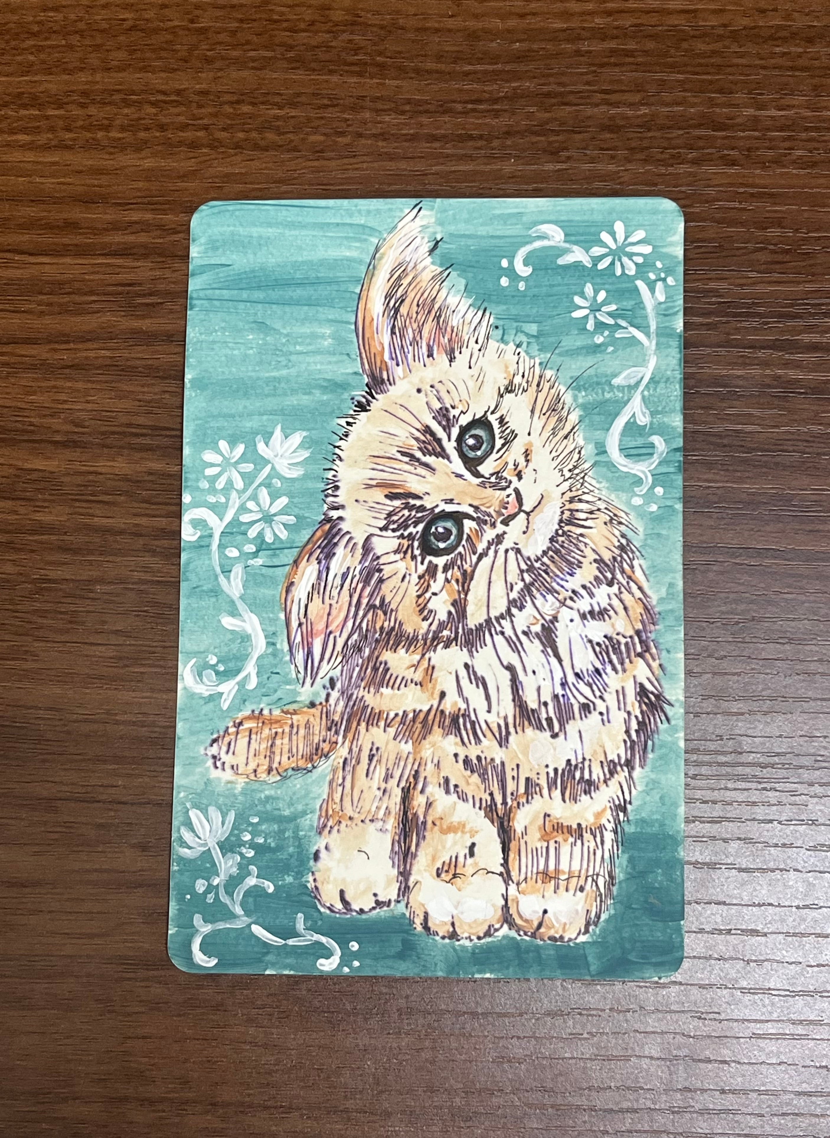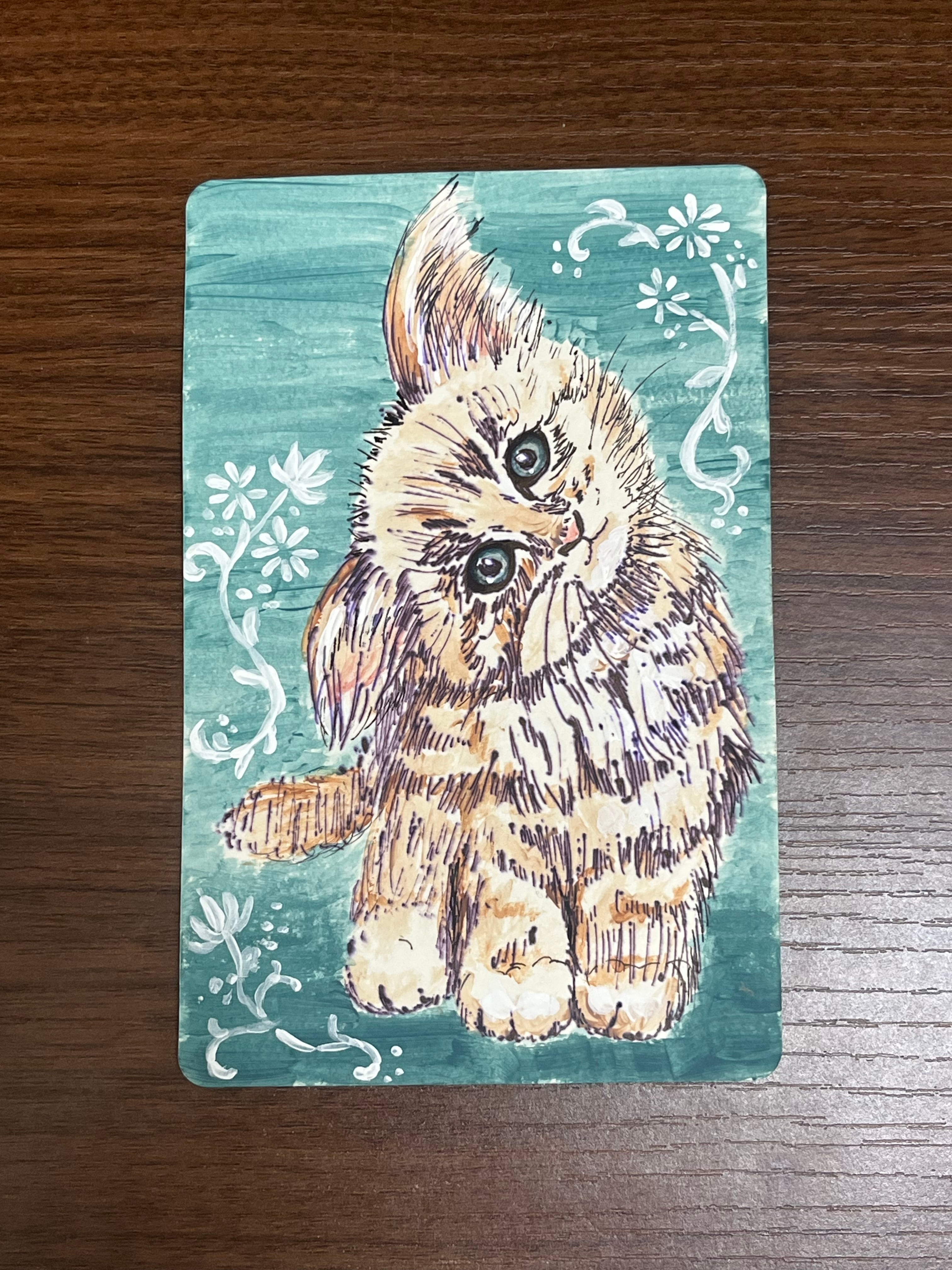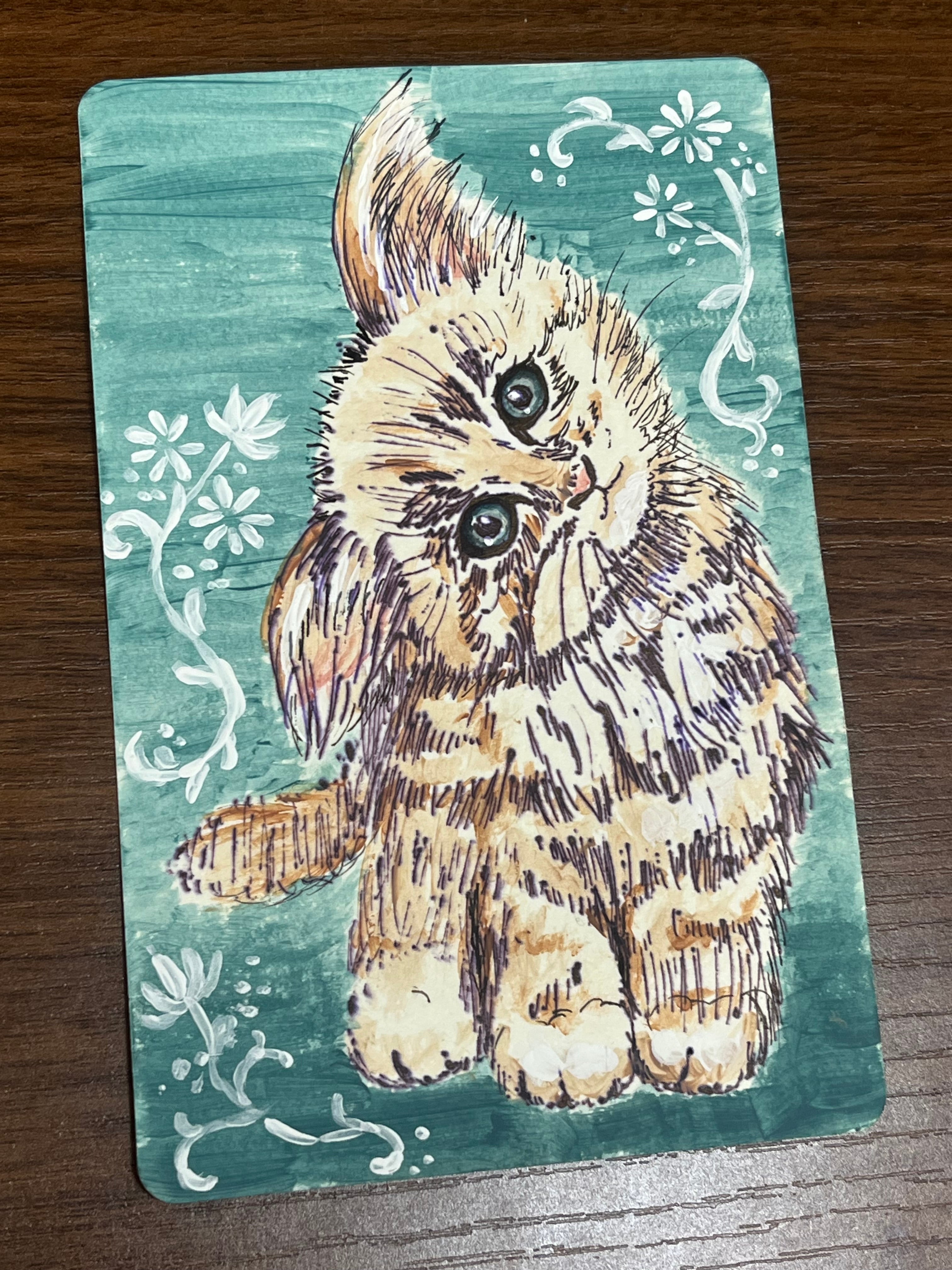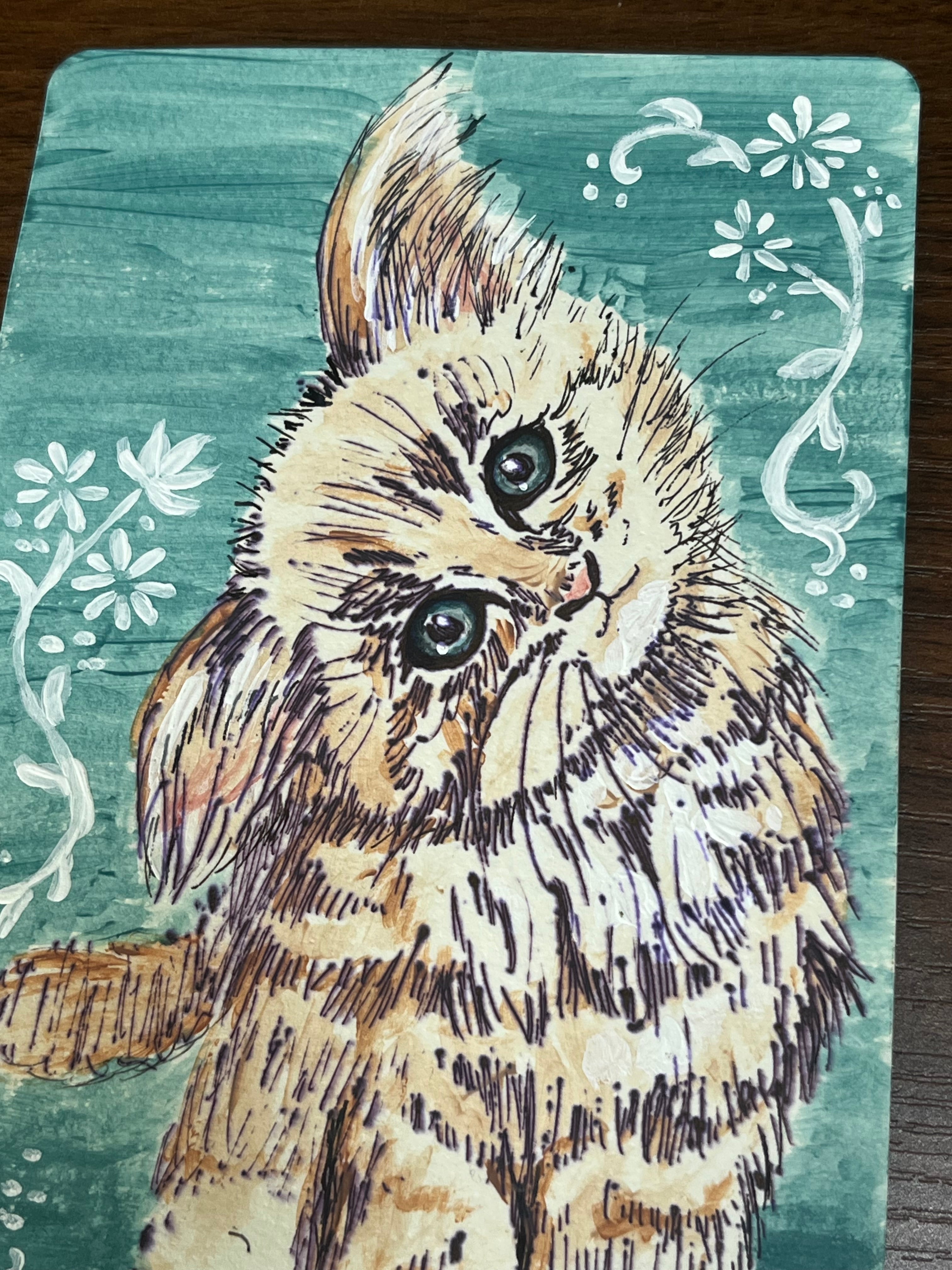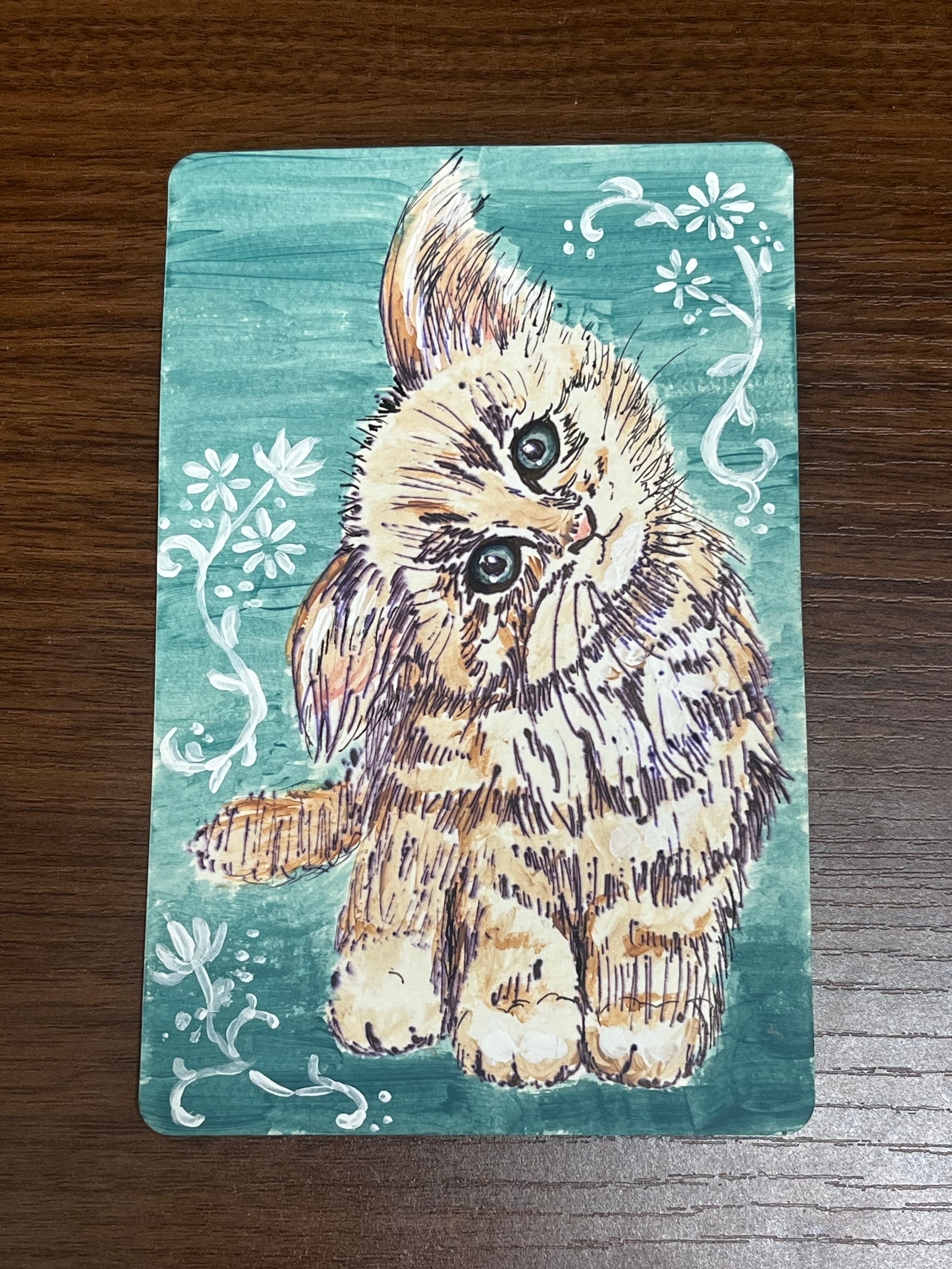 猫 ミニアート(水彩・ボールペン)